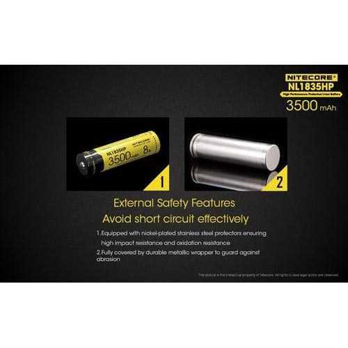 High Performance Protected Circuit Baterai NITECORE 18650 NL1835HP memiliki IC berkualitas tinggi yang dibuat di Seiko Instruments Japan yang secara otomatis mencegah overcharge. Dengan ini, baterai tidak akan merusak perangkat elektrik Anda. Selain itu, penggunaan IC berkualitas juga membuat penggunaan baterai bisa lebih efisien.