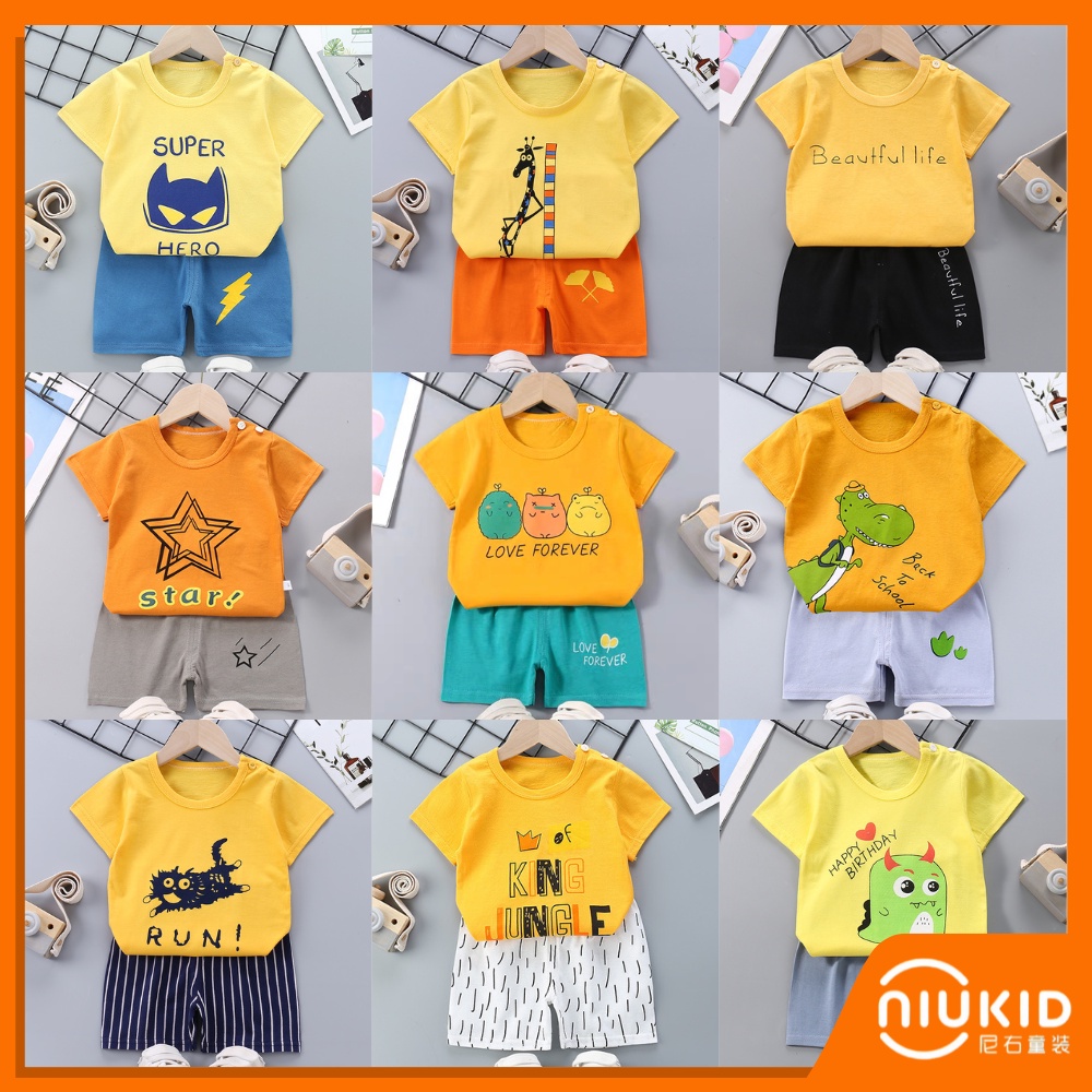 NIUKID SETELAN ANAK BAHAN KAOS LENGAN PENDEK CELANA PENDEK BAJU BAYI LAKI LAKI BAJU BAYI PEREMPUAN STELAN BAYI STELAN ANAK IMPORT KOREA 0 4 TAHUN SETELAN BAYI #B45 - #B54
