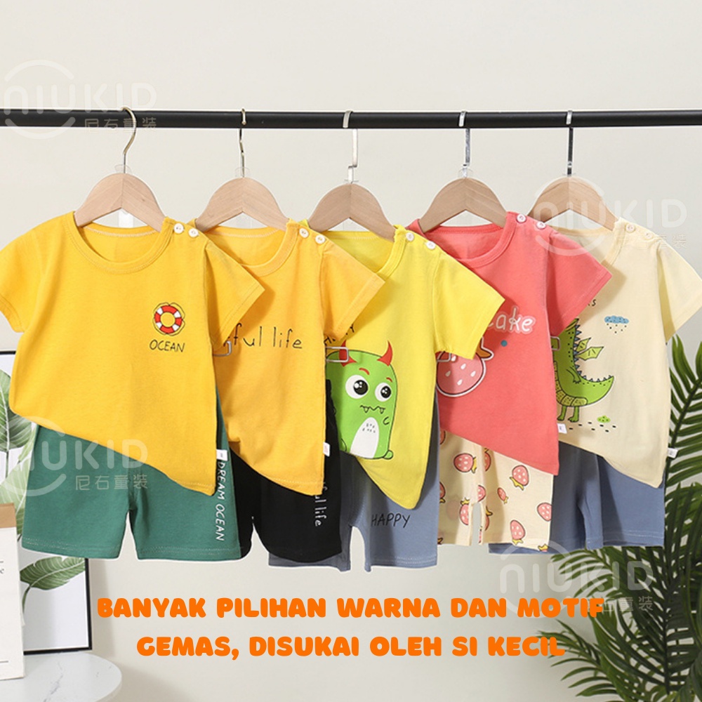 NIUKID SETELAN ANAK BAHAN KAOS LENGAN PENDEK CELANA PENDEK BAJU BAYI LAKI LAKI BAJU BAYI PEREMPUAN STELAN BAYI STELAN ANAK IMPORT KOREA 0 4 TAHUN SETELAN BAYI #B25 - #B34