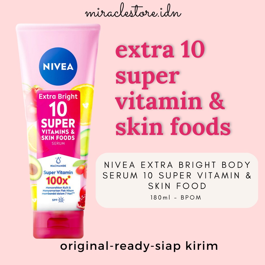 Detail NIVEA EXTRA BRIGHT 10 SUPER VITAMINS & SKIN FOODS 180 ML LOTION NIVEA EXTRA 10 SUPER VITAMINS HAND BODY LOTION MURAH