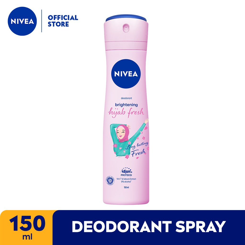 NIVEA Personal Care Hijabi Deodorant Pertama di Indonesia. Mencerahkan serta memberikan sensasi segar seharian. -HALAL - 0% Alkohol -VITAMIN C untuk mencerahkan -SAKURA extract untuk segar seharian -Proteksi selama 48 jam