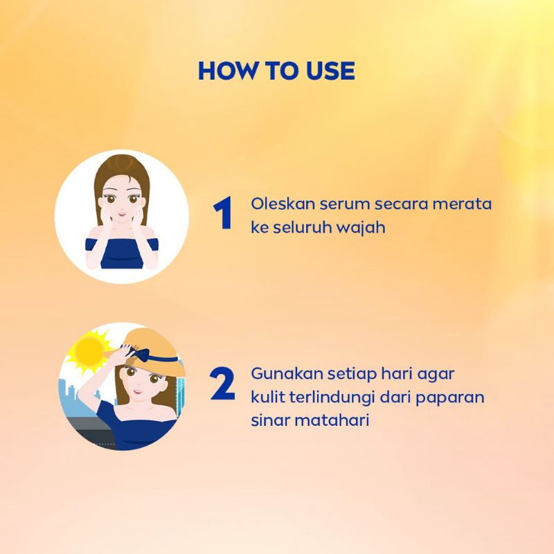 NIVEA Sunscreen pertama dengan kandungan Vitamin C untuk menyamarkan noda hitam dan Vitamin E untuk membantu melembabkan kulit. Tekstur serum yang ringan dan cepat menyerap. Cocok digunakan setiap hari.