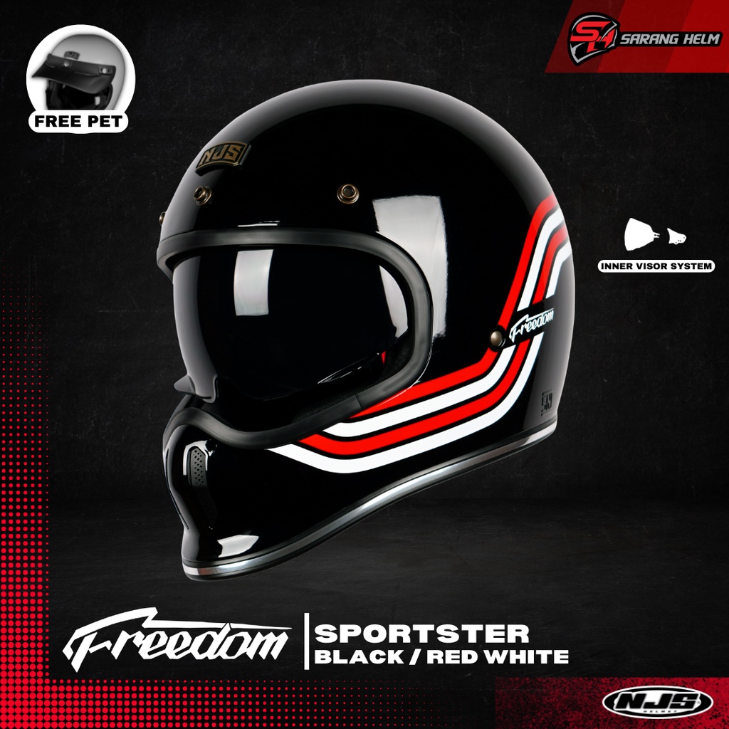 Spesifikasi : - Bahan Thermoplastic - Berat 1.200gr +- 50gr - Inner Visor Ready - Free Pet - Double D-Ring Lock - Wearable Glasses - Intercom Slot Ready System
