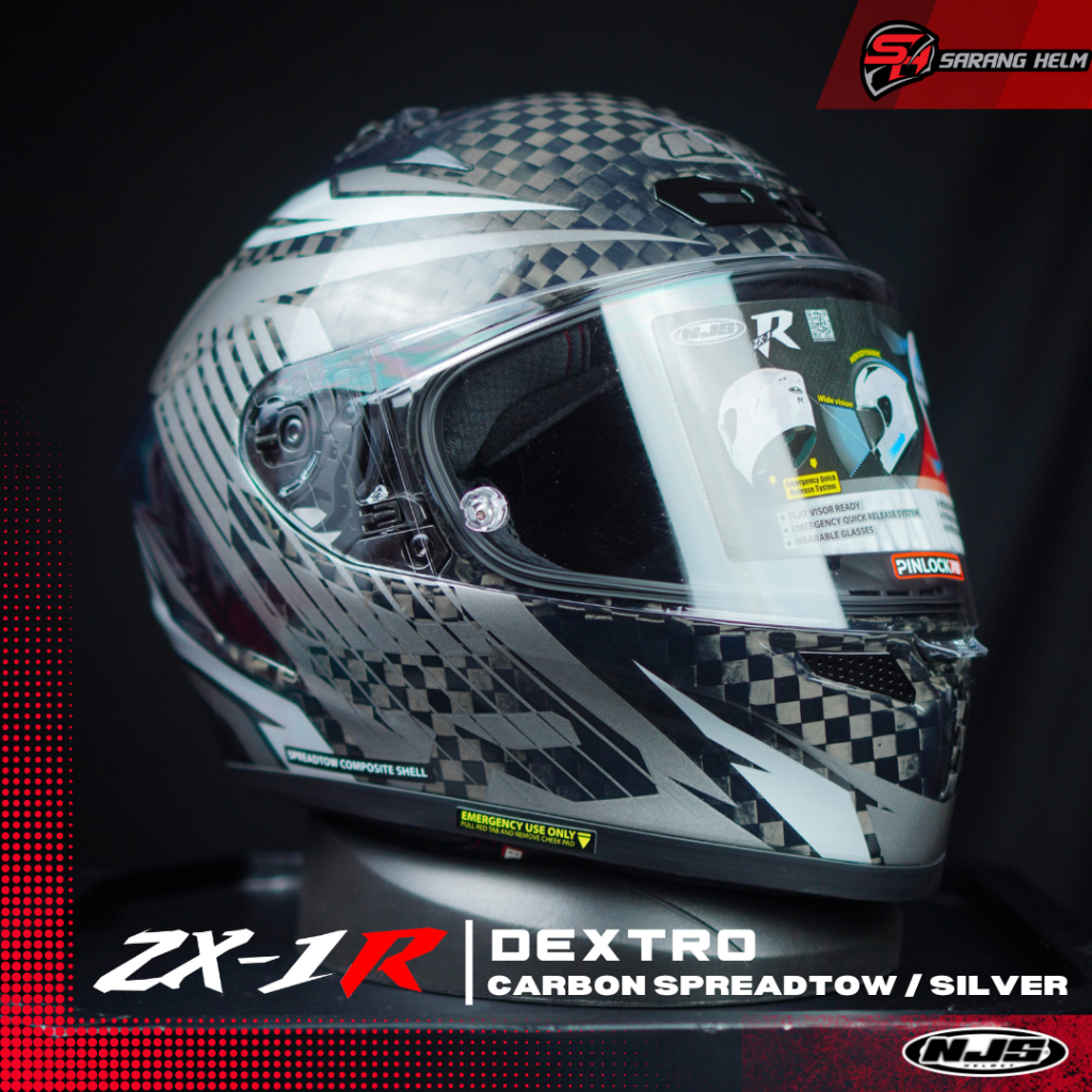Spesifikasi : - 100% Carbon viber 🔥 - Single visor - Emergency Quick Release System (EQRS) ready - Intercom ready design - Weight : 1300gr (kurang lebih) - Flat visor clear (terpasang push pin & tear off post) - Wearable glasses - Interior bisa dilepas untuk dicuci (bongkar pasang) - Sistem tali pengikat double D-ring - Free Pinlock 70 - Free Visor ZX-1R Darksmoke 70 - Lengkap sarung + dus, manual book, stiker merchandise dan kancing emergency cadangan.