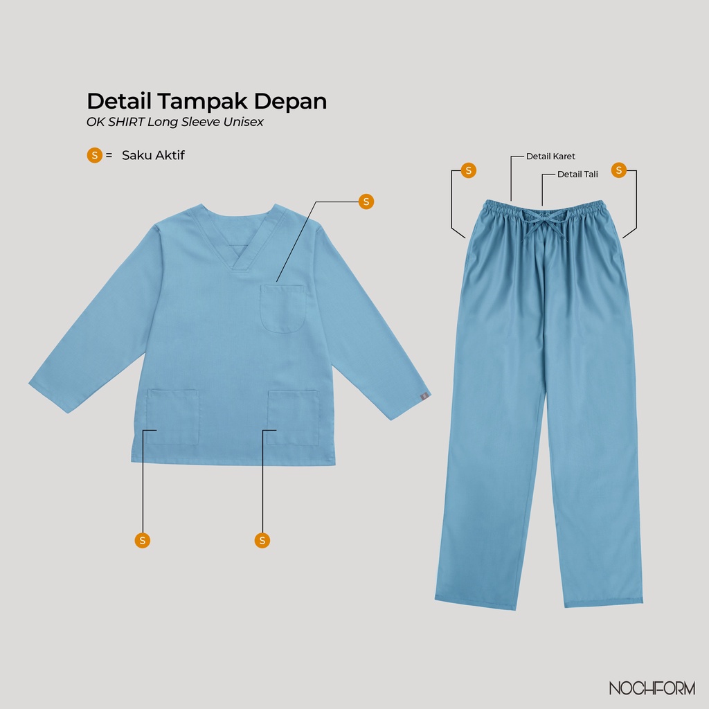 Detail NOCHFORM (VOL 1) Doctor’s Scrub/ Set Baju Celana Jaga OKA / Baju OK Dokter / Baju OK Perawat / Baju Medis Lengan Panjang