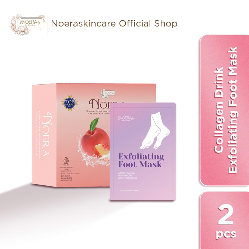 Berisi 2 buah produk 1 box Noera Collagen Drink 1 pcs Noera Exfoliating Foot Mask