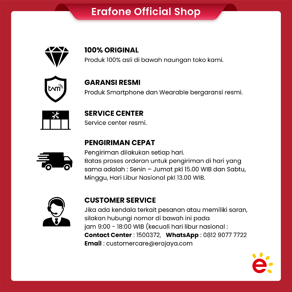 Note : Alamat email yang digunakan untuk transaksi di "Erafone Official Shop" harus sama dengan email yang didaftarkan di MyEraspace