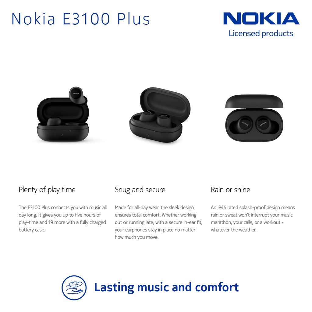 No Postel: 83393/SDPPI/2022 Nokia Essential True Wireless Earphones E3100 Plus Keep the music flowing.