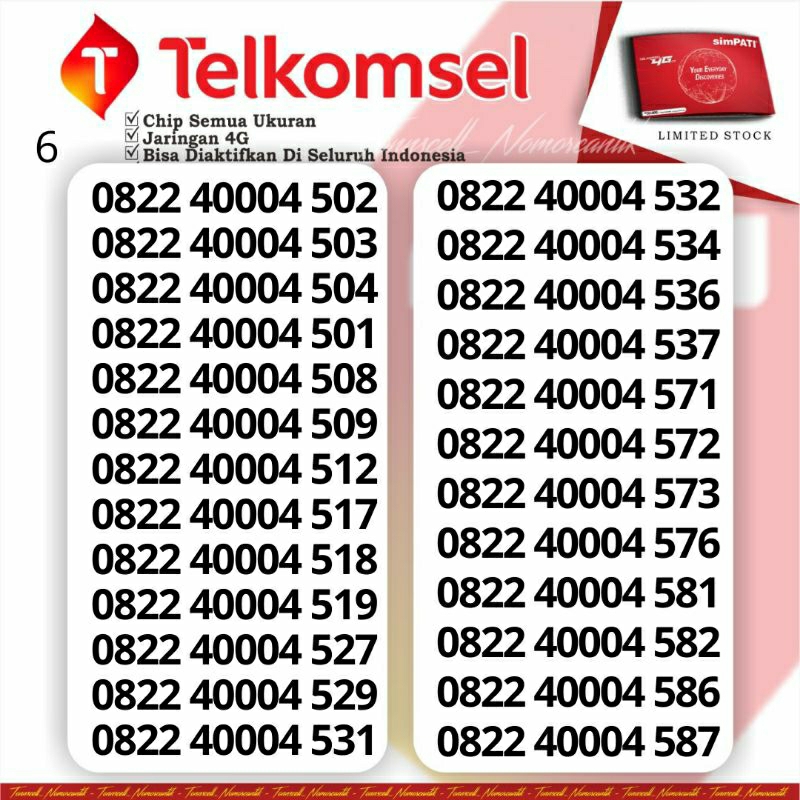 << INFO PRODUK >>> Nomor Cantik Telkomsel - Kartu Baru / Aktif Terawat - Kartu Sudah 4g/3g/2g - Bisa dipakai dimana aja / Bisa Registrasi Se Indonesia. - Pulsa 0 / Kosong - Kartu 3 in 1 (Kecil Sedang dan Besar) - Jika Kartu Tidak Segel Itu Kami Buka Untuk Cek Jaringan (Bukan Bekas Pakai)