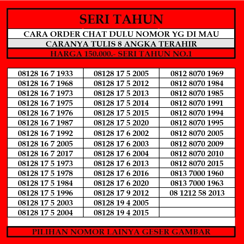 Nomor Cantik Simpati Seri Tahun 4G LTE Rapih Kartu Perdana TelkomselNomor Cantik Simpati Seri Tahun 4G LTE Rapih Kartu Perdana TelkomselNomor Cantik Simpati Seri Tahun 4G LTE Rapih Kartu Perdana Telkomsel