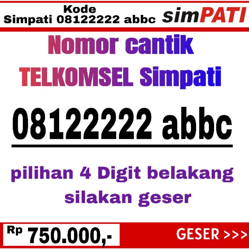 Detail nomor cantik telkomsel simpati 081 22222 abbc/aabc/abcc 4G LTE a rapi
