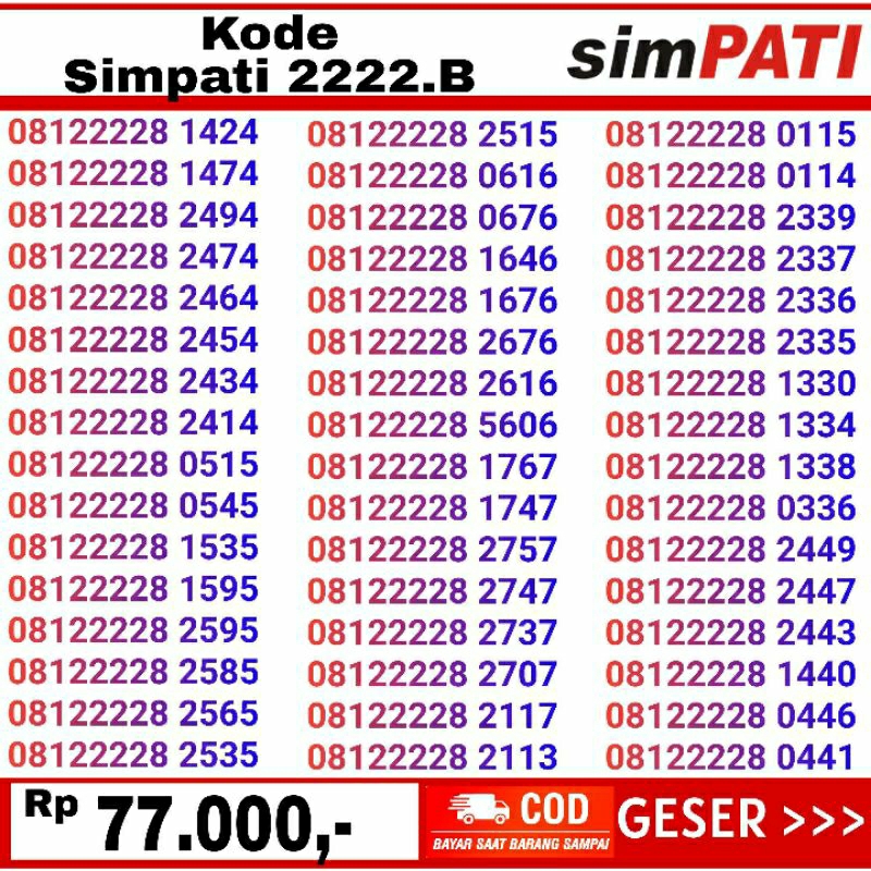 Detail nomor cantik telkomsel simpati 08122222 murah 4G LTE bisa COD