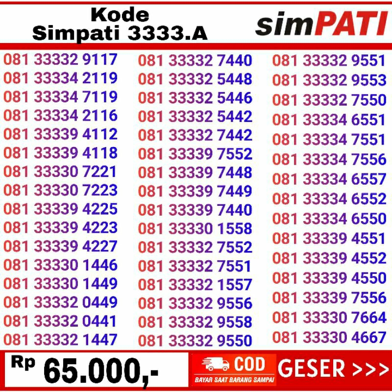 Detail nomor cantik telkomsel simpati seri 3333 murah 081