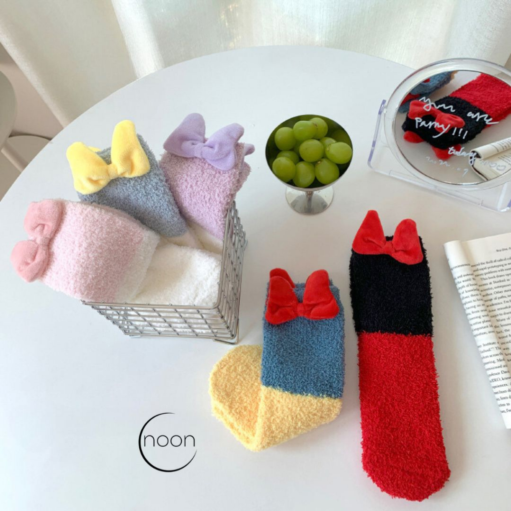 NOON ( once upon a dream ) Kaos Kaki Tidur Wanita Korea Tebal Hangat Winter Socks Panjang Sebetis Lucu Anti Slip Korean Bulu Style Polos SMA Yoga Miniso Muslimah Sekolah Olahraga Perempuan Motif Bulu Imut Import Grosir Lusinan Murah