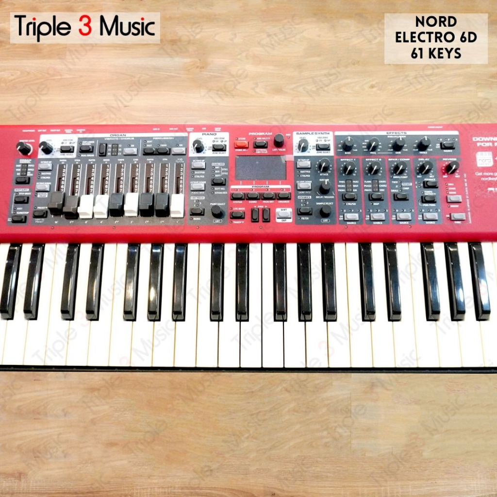 The 61-key Nord Electro 6D 61 stage piano/synthesizer brings a new level of versatility to an already established keyboard. Primed for live performance, the Electro 6D 61 offers user-friendly touches like a streamlined interface, enhanced split and layering options, extended polyphony, and much more. Expanded memory now gives you 512MB of memory for the Nord Sample Library, doubling the previously available polyphony. You also get the B3, Vox/Farfisa and B3 Bass from Nord's C2D Combo Organ. Gigging live just got easier with the Nord Electro 6D 61 stage piano.
