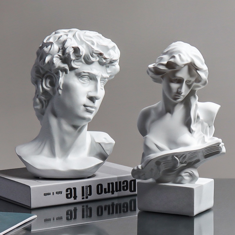Perlengkapan Rumah > Dekorasi > Dekorasi Lainnya > ღ Nordic David Patung Resin White David Kepala Potret Mitologi Yunani Patung Kepala Plester Dekorasi Ruang tamu Potret Seni Dekorasi Rumah