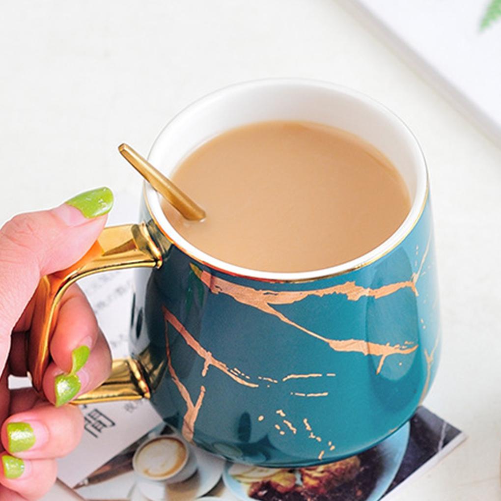 Detail Nordic Style Mug Keramik Kelereng Handgrip Cangkir Oat Breakfast Wadah Tahan Panas Saucer Rumah Kantor Sekolah