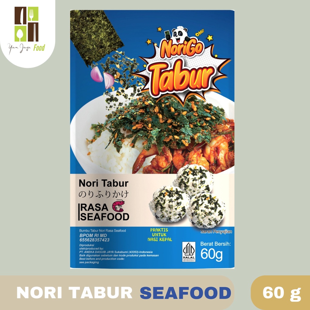 Nori Tabur ini terbuat dari perpaduan rumput laut panggang, bawang goreng dan wijen yang digunakan sebagai tambahan atau taburan untuk menu makanan. Seperti Nasi Goreng, Nasi Kepal, Mie Kuah, Bubur dan Lainnya