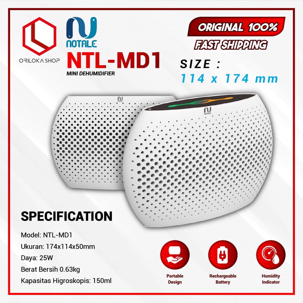 Detail Notale NTL-MD1 Mini Dehumidifier Portable - Garansi Resmi