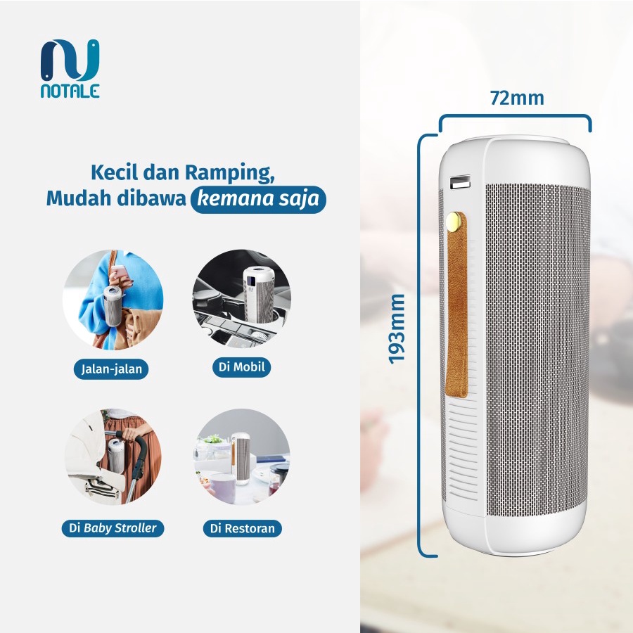 Notale punya solusinya! Portable Air Purifier Travel ini efektif menghilangkan polutan atau kotoran dari udara di sebuah ruangan, alat ini mudah dibawa kemana saja. Bukan hanya untuk menjernihkan udara, alat ini sangat efektiv membunuh virus dan menghilangkan bau tidak sedap.