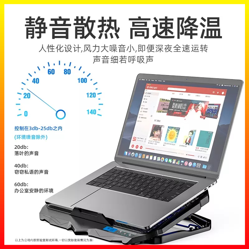 Cooling pad yang dapat menjaga laptop/notebook Anda dari overheat. Cooling pad ini dilengkapi dengan dua kipas besar dan dua kipas kecil yang akan menghasilkan angin yang besar sehingga laptop Anda akan tetap dingin. Selain itu walaupun memiliki kipas yang besar namun tidak akan menghasilkan bunyi yang berisik sehingga tidak menggangu saat menggunakan laptop/notebook.