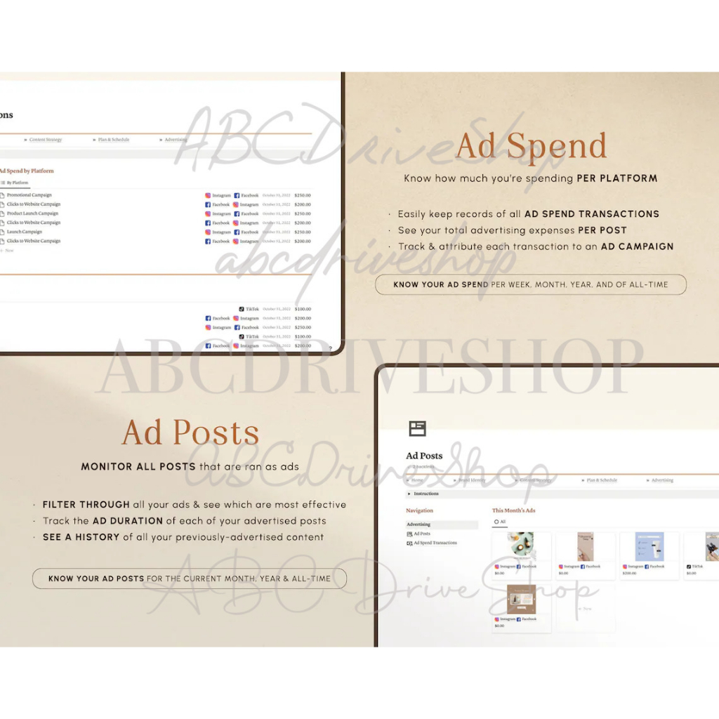 ADVERTISING PAGE • Ad Posts • Ad Spend Transactions