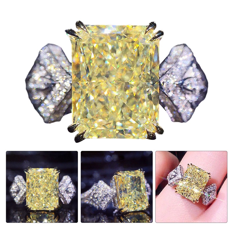 Detail Novel Desain Kuning Cubic Zirconia Batu Persegi Wanita Cincin Pernikahan Upacara Pesta Jari Aksesoris Pernyataan Perhiasan