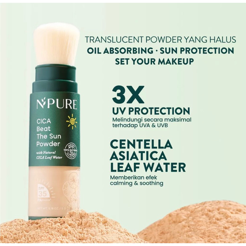 Hybrid sunscreen powder yang ringan dengan menggabungkan physical sunscreen (Titanium Dioxide) dan chemical sunscreen (Ethylhexyl Salicylate & Ethylhexyl Methoxycinnamate) untuk memberikan perlindungan terhadap sinar matahari UVA/UVB dengan kuas yang nyaman. Membantu menyerap minyak berlebih, meminimalkan tampilan pori-pori, dan mengatur riasan sekaligus mengurangi kilau minyak. Diformulasikan dengan Natural Centella Asiatica Leaf Water untuk menenangkan kulit.
