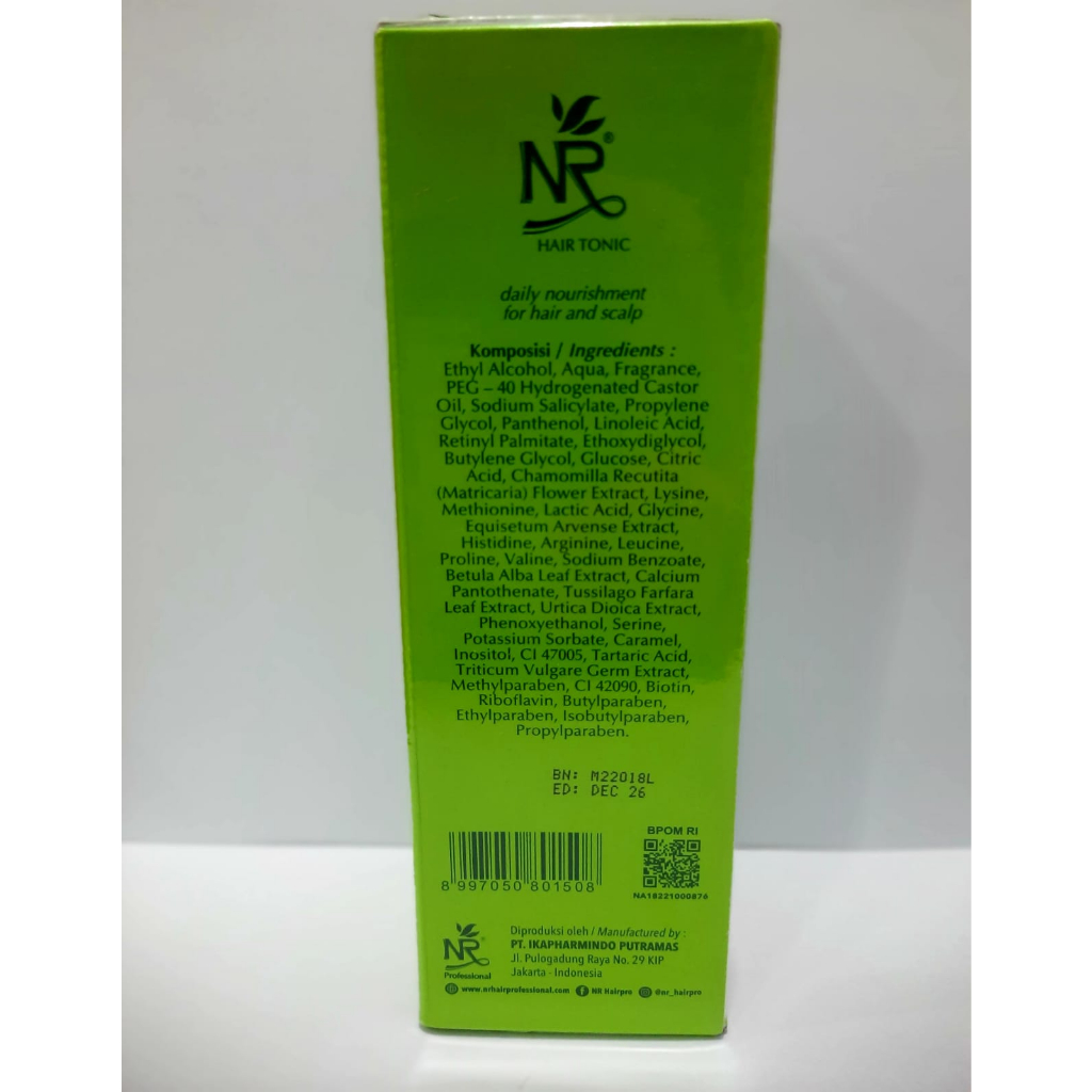 Aturan pakai : Gunakan NR Hair Tonic pada kulit kepala dan rambut Pijat dengan cara memutar pada kulit kepala dengan menggunakan jari tangan jangan menggosok kulit kepala