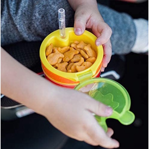 Cocok untuk 12 bulan ke atas Snack & Drink Cup - 2 in 1, Makan dan minum dari wadah yang sama Cangkir menahan 9 ons cairan dan kompartemen atas menampung 4,5 ons camilan (cuplikan cangkir 270 ml dan snack 135 ml)