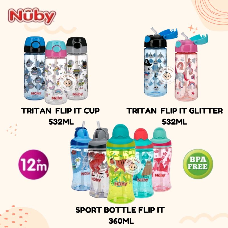 Perlengkapan Rumah > Peralatan Makan > Botol Minum & Aksesoris > NUBY - Tritan Flip It Cup 532ml | Tritan Flip It Glitter 532ml | Sport Bottle Flip It 360ml / Botol Minum Anak