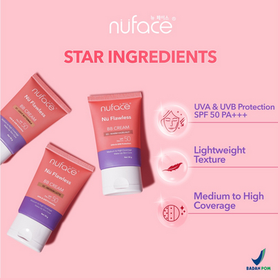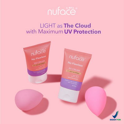 NUFACE Flawless BB Cream sudah dapat free Beauty Blender memiliki tekstur ringan yang menyatu sempurna dengan kulit, mampu menyamarkan warna kulit yang tidak rata dan memberikan perlindungan maksimal dari sinar UVA & UVB yang dilengkapi dengan kandungan skin care.