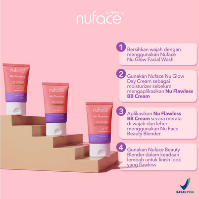 Cara Pemakaian : 1. Bersihkan wajah dengan menggunakan Nuface Nu Glow Facial Wash 2. Gunakan Nuface Nu Glow Day Cream sebagai moisturizer sebelum mengaplikasikan Nu Flawless BB Cream 3. Aplikasikan Nu Flawless BB Cream secara merata di wajah dan leher menggunakan Nu Face Beauty Blender 4. Gunakan Nuface Beauty Blender dalam keadaan lembab untuk finish look yang flawless