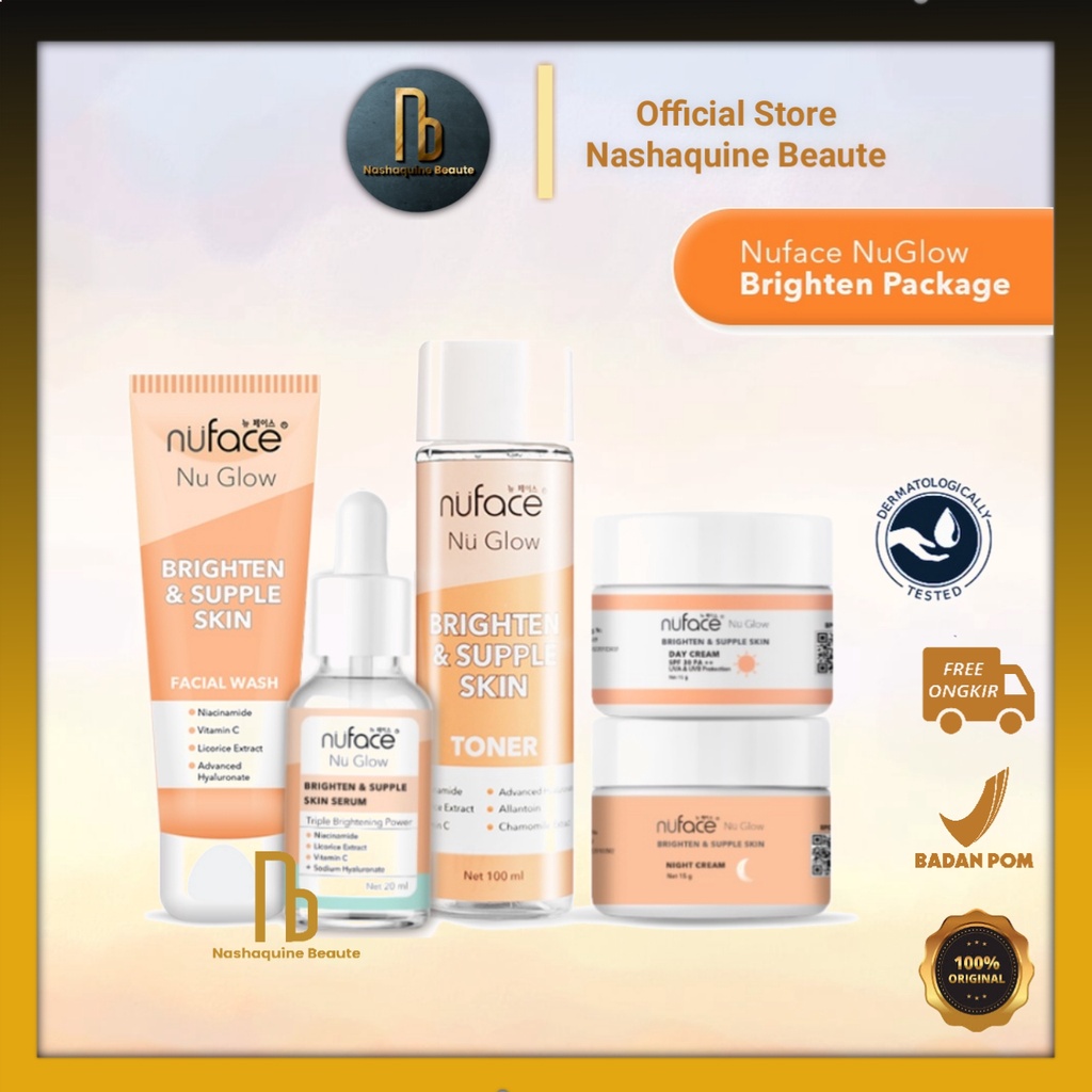 ✨Lanjutkan dengan menggunakan Nuface Nu Glow Brighten & Supple Skin Day Cream (di pagi hari) dan Nuface Nu Glow Brighten & Supple Skin Night Cream (di malam hari). Ulangi urutan pemakaian rutin pagi dan malam agar hasil maksimal.