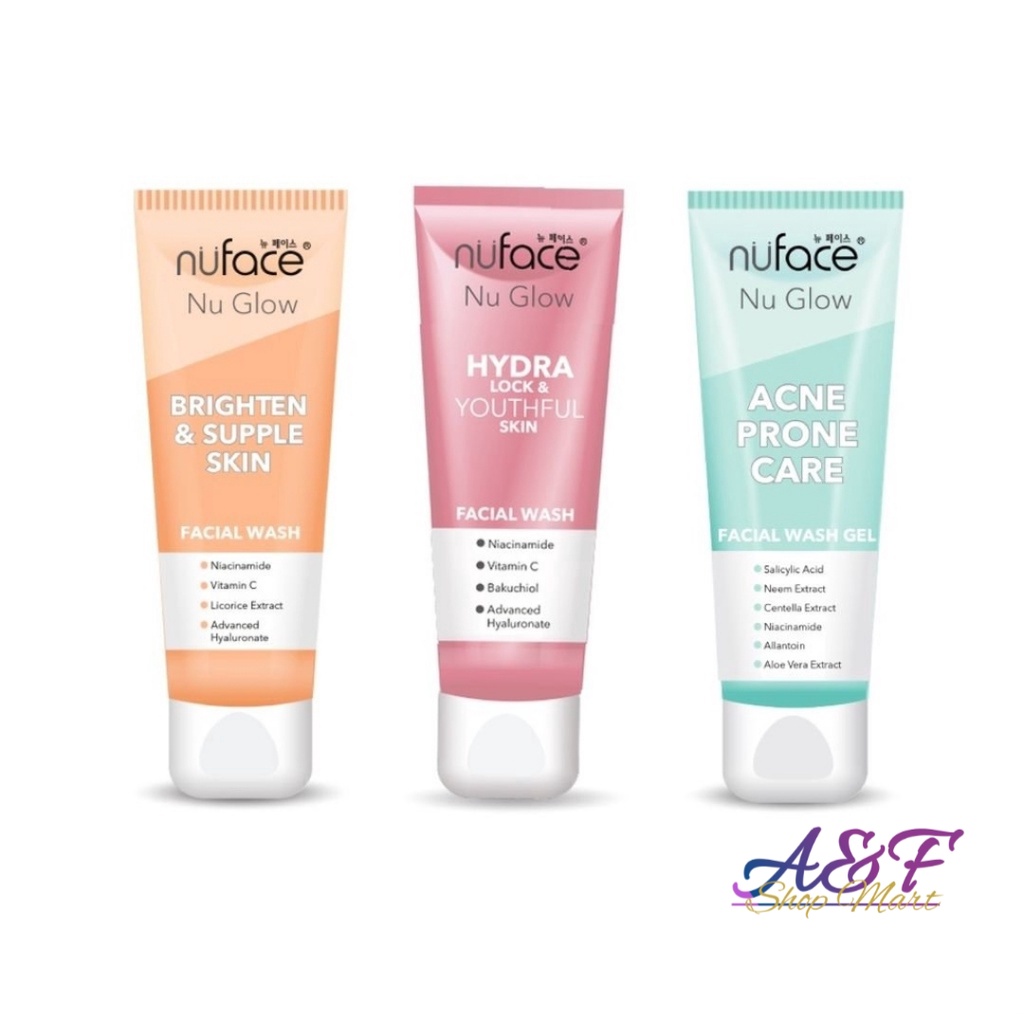 Nuface Nu Glow Facial Wash 80ml | Hydra Lock & Youthful Facial Wash Gel - Brighten & Supple Skin Facial Wash Cream - Acne Prone Care Facial Wash Gel | TnT Beauty Shop Original 100% Ada No.BPOM di kemasan
