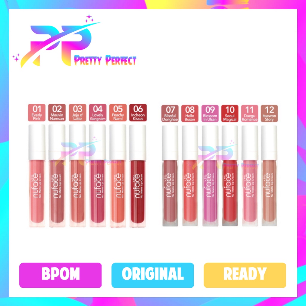 Nuface Nu Matte Lip Cream dengan formula yang ringan, tekstur velvety matte, dan warna yang pigmented dalam sekali usap serta transfer proof sehigga nyaman digunakan. Diperkaya dengan Extra Moisturizer dari Phito Squalane & Vit. E yang menjaga kelembapan bibir sehingga bibir tetap lembut, lembab dan plumpy alami.