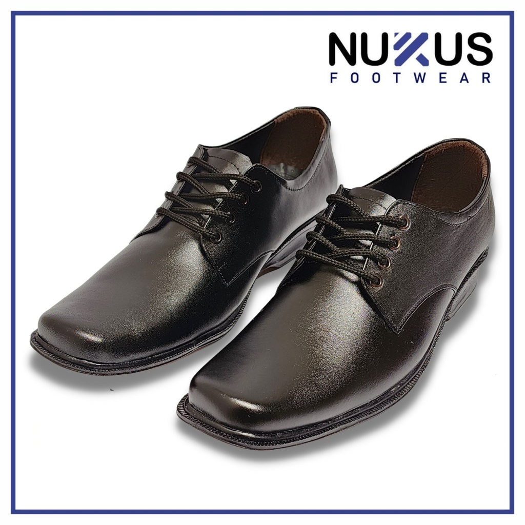 Nukus Pantofel Tali Pria Oxford Kulit Asli Hitam - TL 02