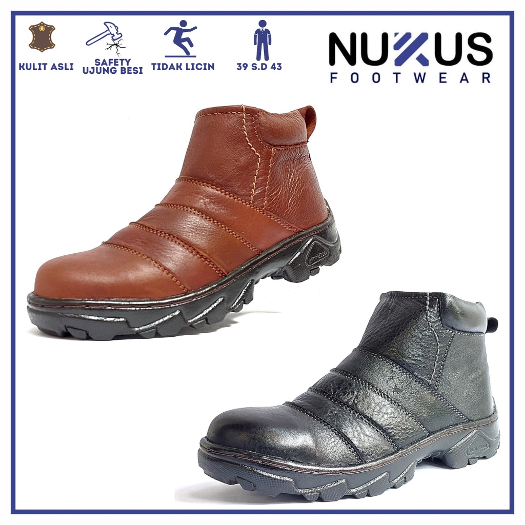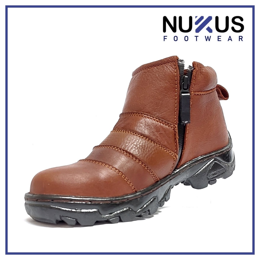 Nukus Sepatu Safety Boots Pria Kulit Sapi Asli Coklat Tua dan Hitam - BRS GB