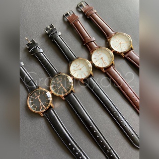Jam Tangan ALB RUMI Quartz Analog Wanita Pria Tampilan Retro Bentuk Bulat Tali Kulit PU
