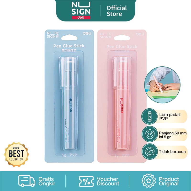 Detail Nusign Pen Glue Stick / Lem Stick Berbentuk Pen PVP 5g Warna Pastel NS138