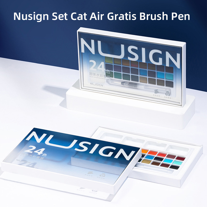 Detail Nusign Solid Watercolor Paint / Set Cat Air Padat 24 Warna Gratis Brush Pen NS733