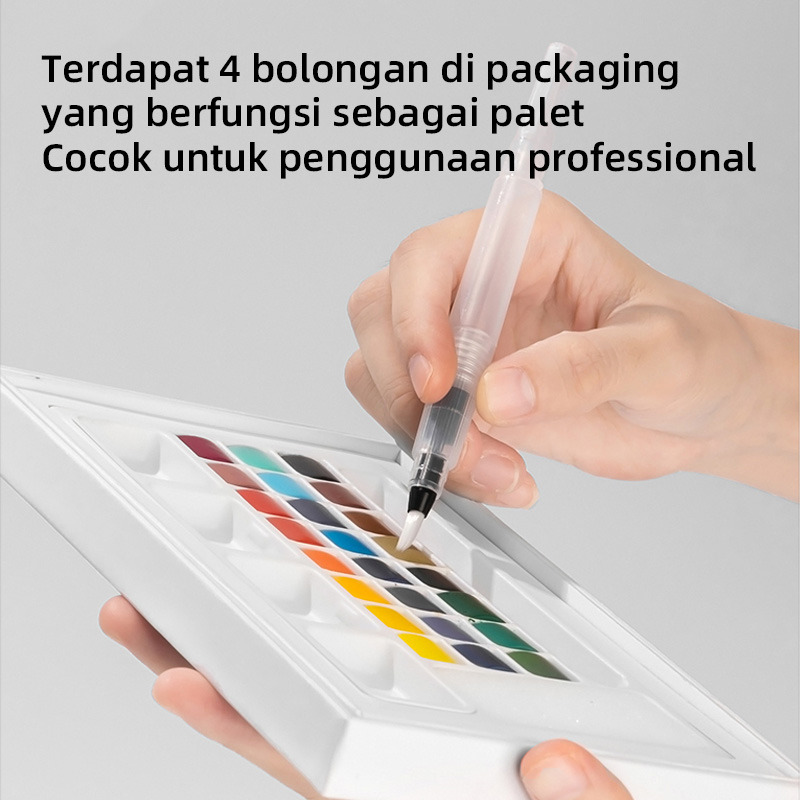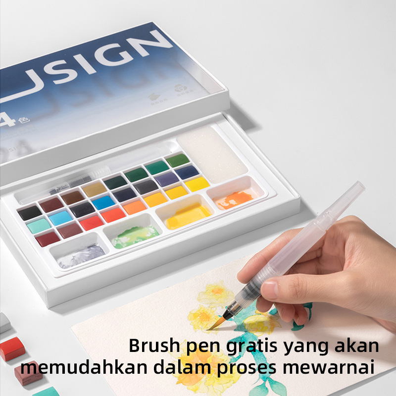 "Nusign Solid Watercolor Paint / Set Cat Air Padat 24 Warna Gratis Brush Pen NS733"
