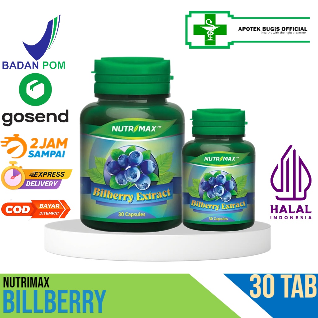 NUTRIMAX BILBERRY EXTRACT merupakan suplemen yang menggunakan Standardized ekstrak Bilberry, setara dengan 10.000 mg Bilberry powder dan mengandung minimal 25% anthocyanosides yang digunakan untuk membantu memelihara kesehatan mata dan melancarkan sirkulasi darah Indikasi Umum Membantu memelihara kesehatan mata dan melancarkan sirkulasi darah Komposisi Tiap kapsul mengandung : Vaccinnium myrtillus fructus extract (Bilberry fructus extract) 110 mg. Dosis 1-2 kapsul per hari Aturan Pakai Diminum setelah makan pagi atau siang. Perhatian