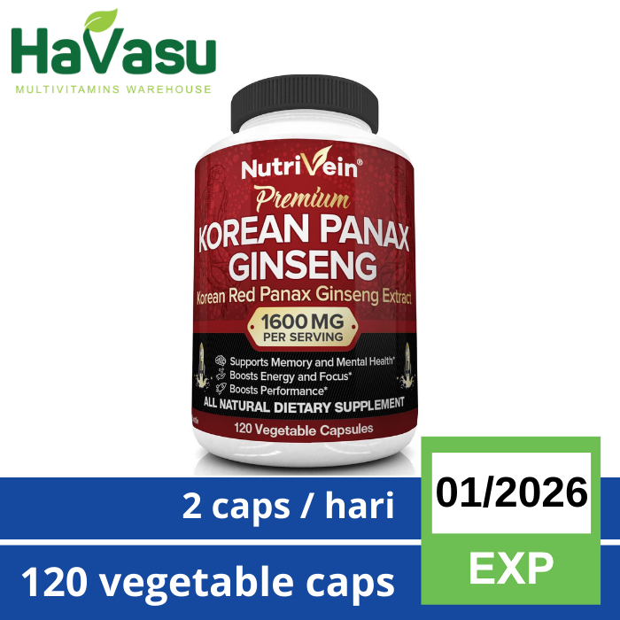 Detail Nutrivein Korean Red Panax Ginseng 1600 MG for Energy Vitality Libido - 120 Veggie Caps