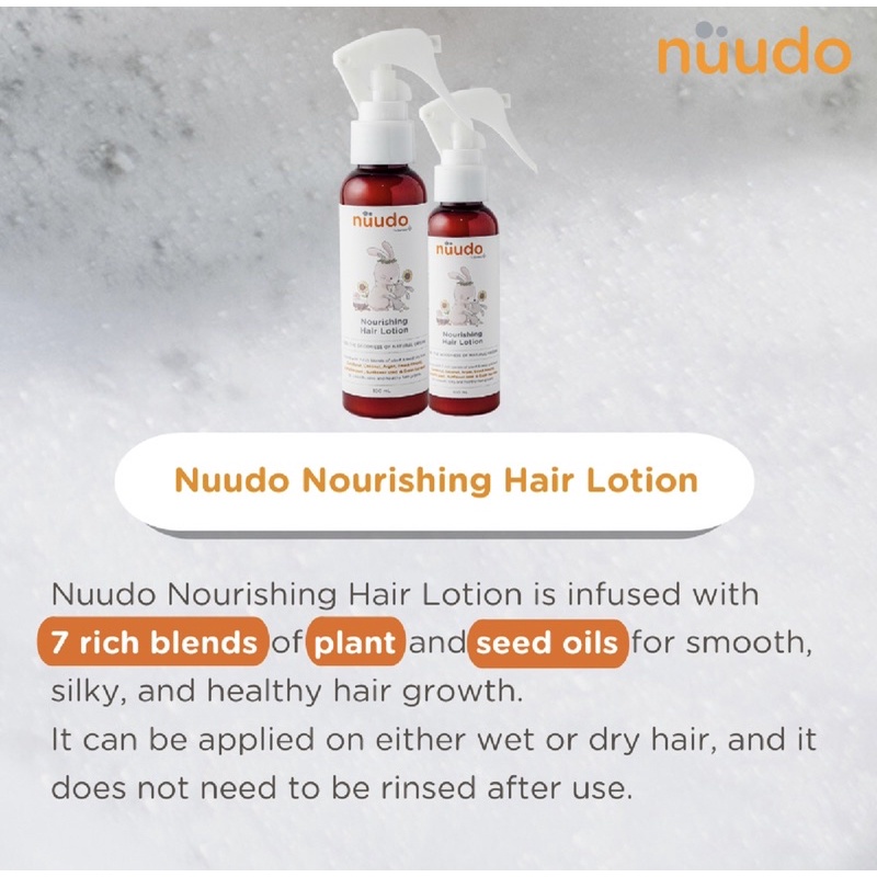 Ibu & Bayi > Kesehatan & Perawatan Bayi > Perawatan Rambut & Sabun Mandi > Nuudo Nourishing Hair Lotion Spray 100ml