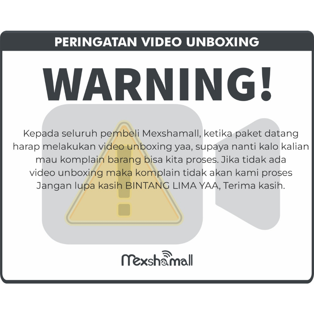 TANPA VIDEO UNBOXING KOMPLEN TIDAK BISA DI PROSES !!!