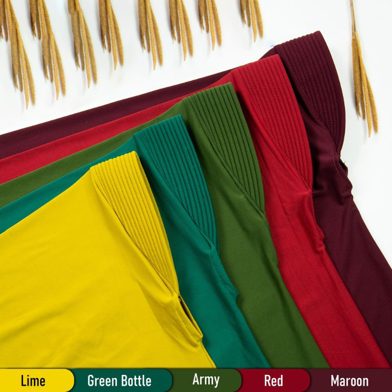 Bahan:Jersey Hamidah 1. Memiliki Berbagai Macam Varian Warna 2. Mampu Menyerap Keringat dengan Baik 3. Bahannya Cepat Kering 4. Sifat Kainnya Tidak Mudah Kusut 5. Bahannya Awet 6. Bahannya Melar, Fleksibel, dan Jatuh 7. Memiliki Harga Terjangkau 8.produk polos dan belum dilabel