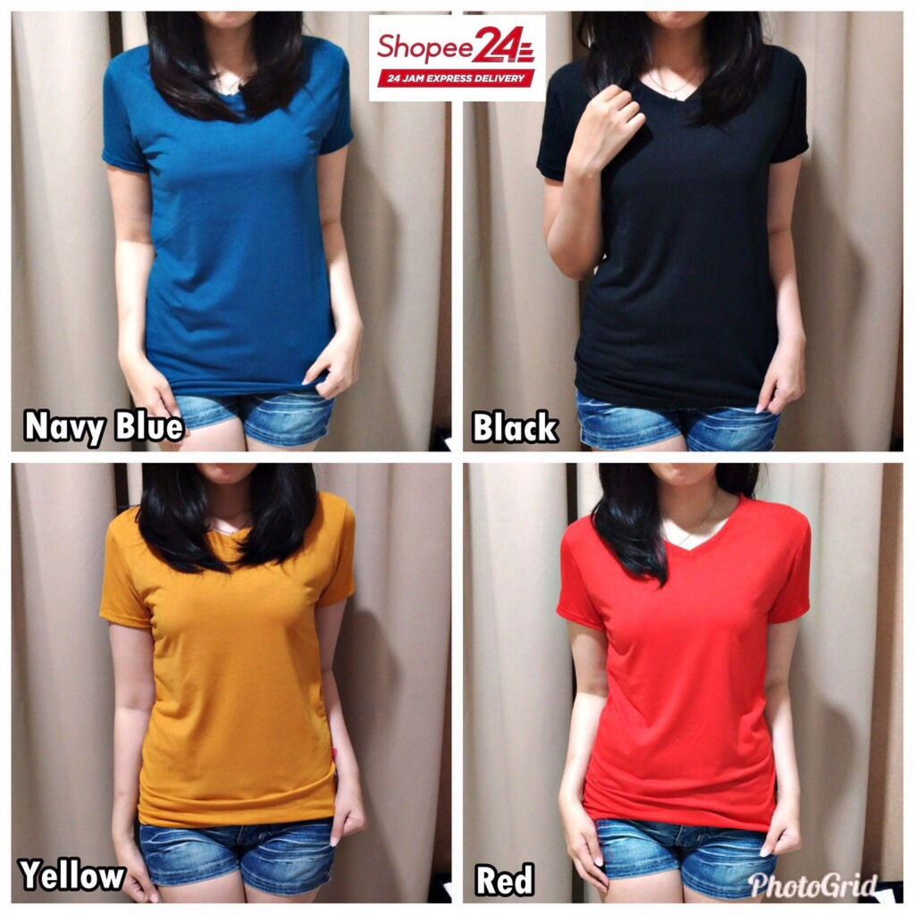 bahan : SOFT SPANDEX size : FIT TO L, LD 86CM / PJG 62CM motif : KAOS BASIC POLOS V-NECK berat : 140gr (1kg muat 8pcs)
