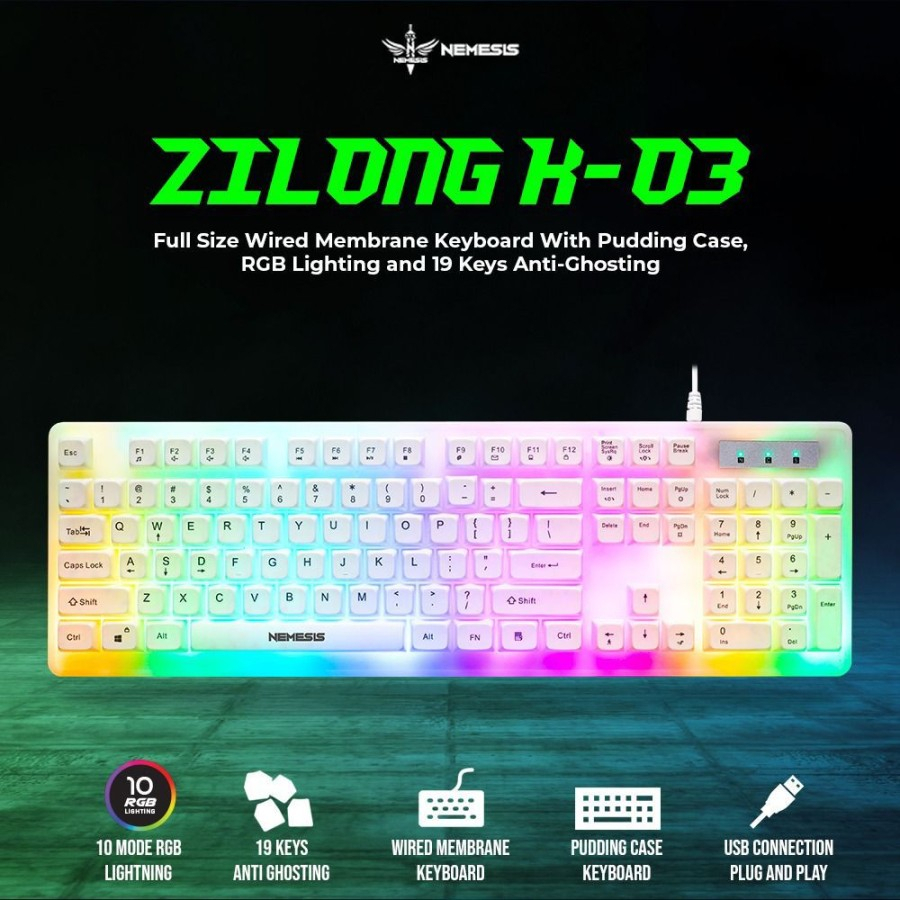 Detail NYK K03 / K-03 Zilong Pudding Case Full RGB Gaming Keyboard