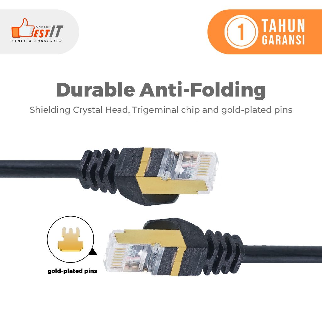 * Kabel lan Cat 7 sudah ada kepala rj nyaa langsung colok saja ke router nya. * Kabel ini kompatibel dengan 1000Mhz dan cocok untuk Ethernet 10BASE-T, 100 BASE-TX (FAST ETHERNET) dan Peer-to- Peer, serta perangkat lain yg memanfaatkan jaring kabel 8C8P termasuk telepon. * Jaringan kabel NYK Ca7 menawarkan konektivitas universal komputer dan komponen jaringan seperti : router, switch box,printer jaringan, attached strorage (NAS) perangkat jaringan telpon VoIP dan perangkat POE. *Memberikan kinerja transmisi hingga 10Gbps dan meminimalkan sinyal yang rendah, transfer data dengan kecepatan tinggi dan ketahanan korosi serta menghemat waktu dan biaya
